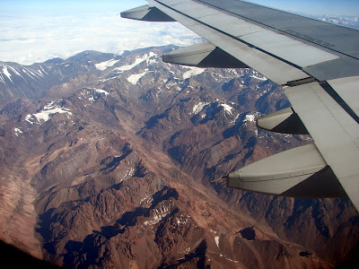 Gran sorpresa la mia cuando al empezar a cruzar hacia el lado chileno, los sobrecargos informaron al resto del pasaje que en ese punto comenzaba la cordillera de los ANDES, magestuosa......con sus cumbres nevadas....sol....y un paisaje ùnico e inigualable de esta maravilla que Dios nos ha puesto para regocijo de nuestras retinas.....a los que vivimos de este lado del planeta....
